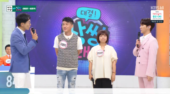 6일 오전 방송된 KBS1 '아침마당'의 '쌍쌍파티'에는 하동근 영기, 강진 김효선, 이범학 원미연이 출연했다.