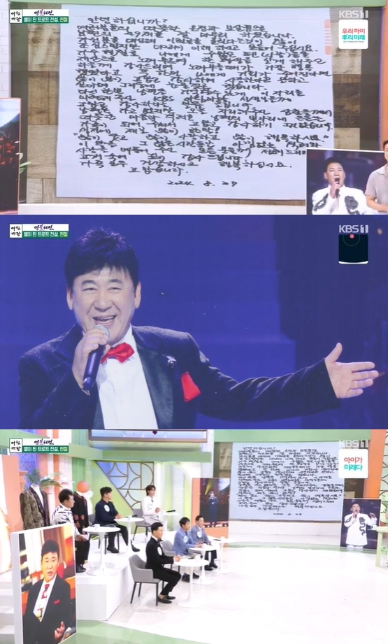 '아침마당' 고 현철의 아내가 자필 편지를 통해 고마운 마음을 전했다. 9일 방송된 KBS 1TV '아침마당'에서는 강진 왕종근 박구윤 최우진 박성훈 현칠이 출연해 가요계 명불허전 고(故) 현철을 추억