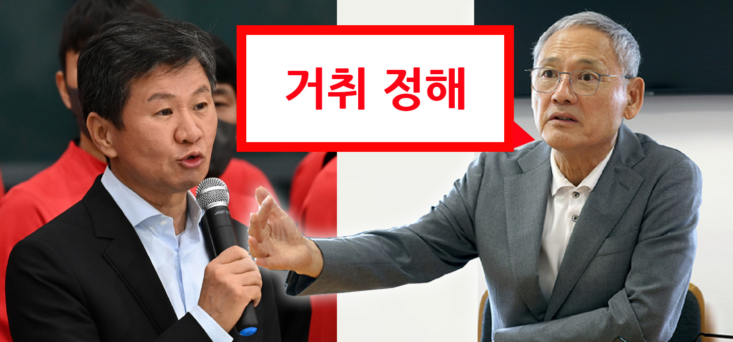 최근 홍명보 축구 국가대표 감독 선임 문제 등과 관련해 유인촌 문화체육관광부 장관이 이달 말 대한축구협회(축협) 감사 결과를 발표하겠다며 정몽규 대한축구협회장의 퇴진을 우회적으로 요