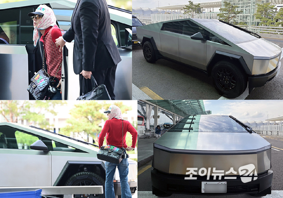가수 지드래곤이 미국 테슬라의 전기 픽업트럭인 '사이버트럭'을 타고 공항에 나타났습니다.