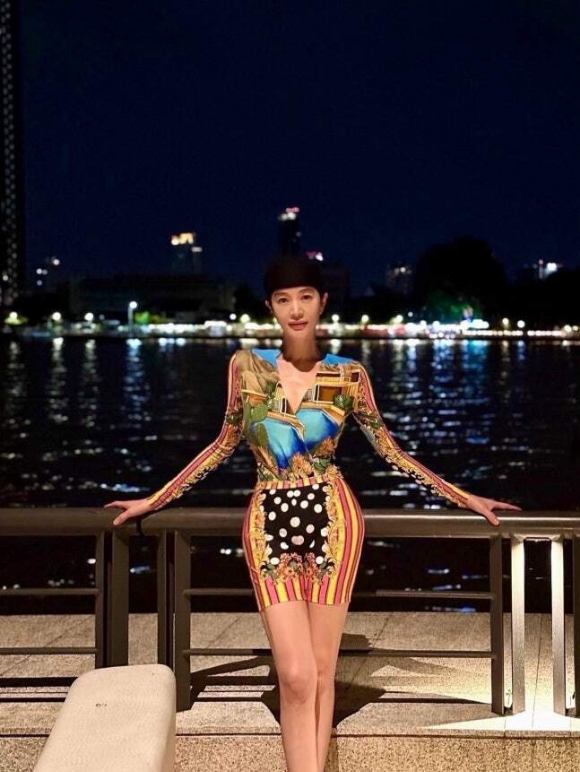 공개된 사진에는 야경을 배경으로 인증샷을 남기는 김혜수의 모습이 담겼다. 몸에 밀착된 화려한 의상을 입고 콜라병 몸매를 뽐내고 있다.